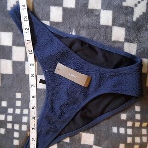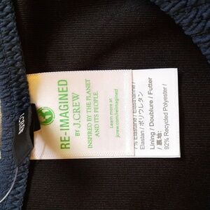 J. Crew NWT Re-imagined Navy Blue High Cut Textured Bikini Bottoms Size Medium. Waist 14 inches. 93% recycled polyester 7% elastane. Lining 92% recycled polyester 8% elastane. Questions and offers welcome.