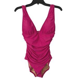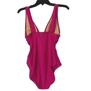 J Crew NWT Ruched One Piece Deep V Neck Bright Pink Swimsuit Size 8