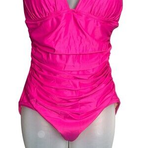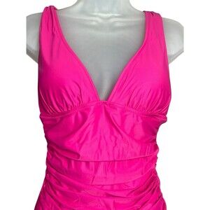 J. Crew NWT Ruched V Neck One Piece Sz 10 Swimsuit Fuchsia BC116 Full Coverage