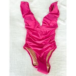 J. Crew | NWT | Ruched ruffle one-piece swimsuit in Radiant Fuchsia | Sz 4