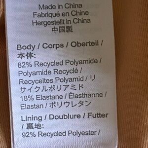 92% recycled poly/8% elastane lining.