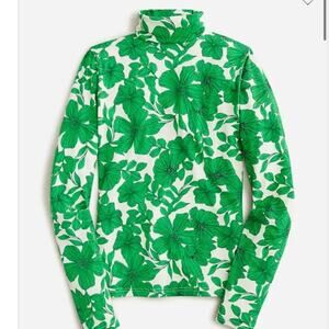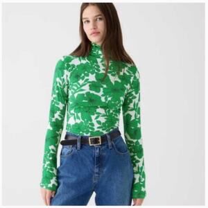 J. Crew NWTs Matte Jersey Botanical Print Turtleneck Top Kelly Green medium