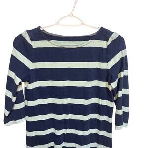 J Crew Nautical Navy & Mint Green Mini Shirt Dress 3/4 Sleeve Striped Shift XS