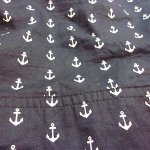Dark Navy Blue(in some lights it looks black but it isn't it's a very dark navy) background hosts a White Anchor Pattern.