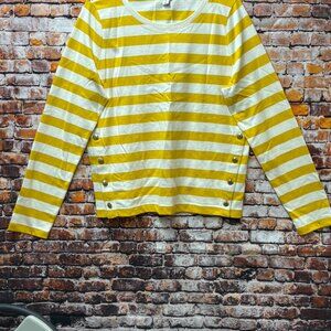 J. Crew Nautical Top Yellow Stripe Long Sleeve Top Crew Neck Size Small