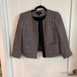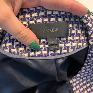 J Crew Navy 3/4 Sleeve Silk Blend Cropped Tweed Blazer Jacket Size 2