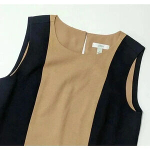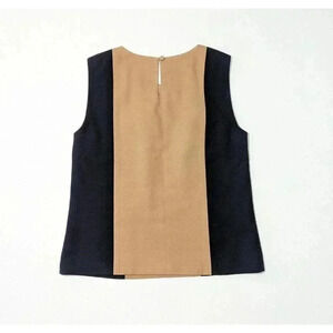 J Crew Navy Blue Camel Tan Colorblock Color Block Top Sz 2 100% Wool Sleeveless