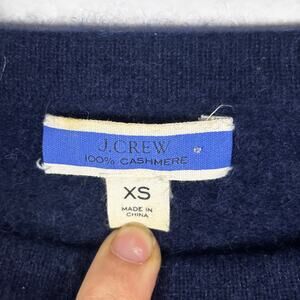 This J. Crew navy blue cashmere sweater is an elevated staple with it's t-shirt silhouette. It is 100% cashmere and marked a size xs. It is pre-owned and the material is fuzzy but there is no pilling. No holes or stains.