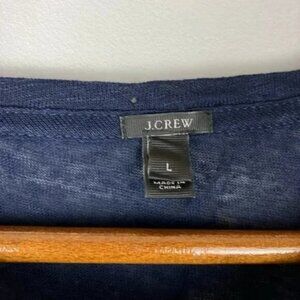 J. Crew Navy Blue Collector Linen Anchor Pocket Tee Shirt - casual and comfortable lightweight short sleeve top with gold anchor on the chest pocket. Tags - beach, summer, vacation, pool, tropical, nautical, boats, seaside, coastal, etc. BRAND: J. Crew SIZE: Large L CONDITION: Excellent condition EUC FABRIC CONTENT: 100% Linen APPROXIMATE MEASUREMENTS: Bust (pit to pit laid flat) is 20 inches. Length (shoulder to hem) is 20 inches. *All items come from a smoke free home. Get 15% off when you bundle 2 or more items together and save on shipping! All offers are considered.