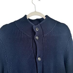 J Crew Navy Blue Cotton Cable Knit Cardigan Sweater Chunky Preppy Mens Large