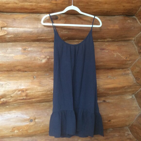 J. Crew Navy Blue Gauzy Ruffle Hem Strappy Coastal Cowgirl Sundress Size Large