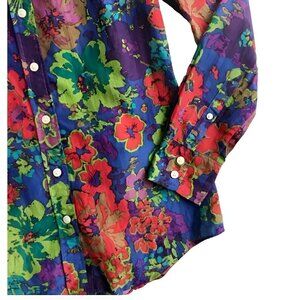 J Crew Navy Blue Green Pink Floral Lightweight Airy Cotton Silk Shirt Top XXS 00