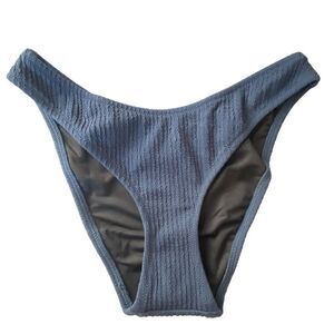 J Crew Navy Blue Jacquard Texture Curve Waist Cheeky Bikini Bottom NWT are available in sizes S & L and are new with tags & hygienic liners in place