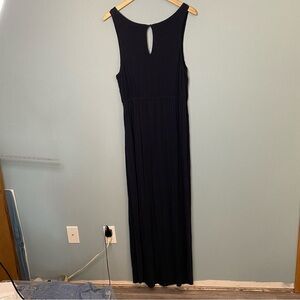 J Crew Navy Blue Jersey Knit Maxi Dress Keyhole Cutout Women's Size L