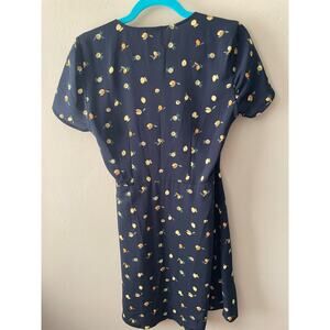 J. Crew wrap mini dress, size 0. Navy blue with yellow lemon pattern.