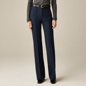 These J Crew Natalia pants have been worn maybe once or twice, but are still in very good condition with no rips, holes, etc. Navy blue pants with seaming down the front and a gently flared leg. Made with four-season stretch (a super-comfy fabric that never loses its shape). Waist measurement: 15". Rise: 11". Inseam: 32". Leg opening: 10.25". Size 6.