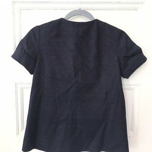 J Crew Navy Blue Pleated Cotton Blazer Jacket Short Sleeves