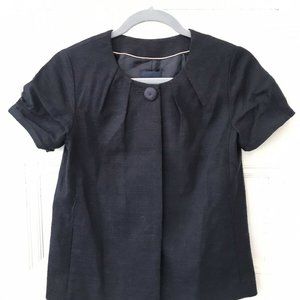 J Crew Navy Blue Jacket Size 0 Womens Lined Cotton Blazer with Pleated Short Sleeves and pleated front.