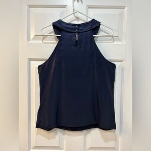 J Crew Navy Blue Silk Halter Top Sleeveless Metallic Blouse Pleated Women's Sz 8