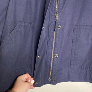 J. Crew Navy Blue Stripe Lined Cotton Nautical Rain Jacket Size Medium