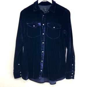 J. Crew Navy Blue Velvety Velour Button Up Pocket Chest Long Sleeve Shirt