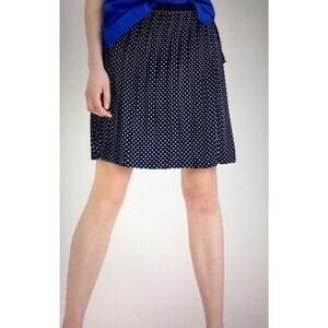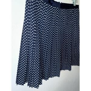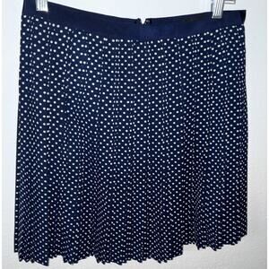 J. Crew Navy Blue White Polka Dots Stitched Pleated Mini Skirt Sz 8