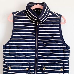 J. Crew Navy Blue White Stripe Down Puffer Vest Medium