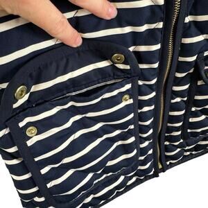 J. Crew Navy Blue White Striped Full Zip Puffer Vest Nautical Pockets Size XS