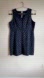 This elegant navy blue sleeveless dress features a charming yellow pattern, perfect for any occasion. Its classic design offers both style and comfort.