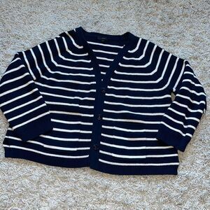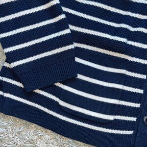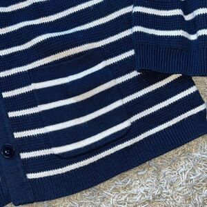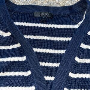 J. Crew Navy Blue White Nautical Striped V Neck Cardigan Cotton Sweater 3/4 Sleeve Women Large EUC