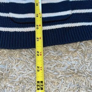 J. Crew Navy Blue White Nautical Striped V Neck Cardigan Sweater 3/4 Sleeve Wom