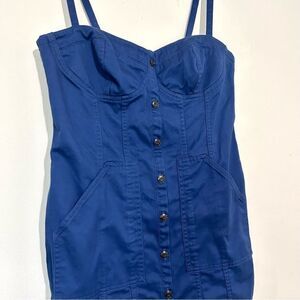 J. Crew Navy Button Down Sweetheart Twill Bustier Sleeveless Dress SIZE 8