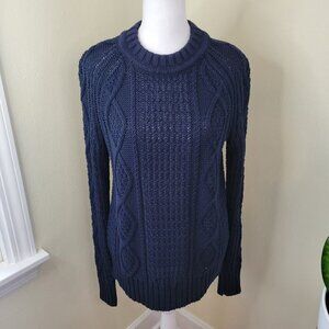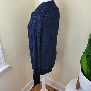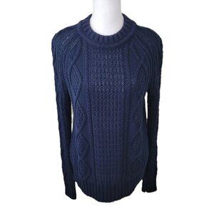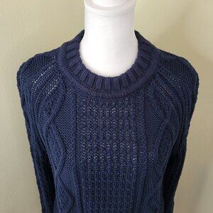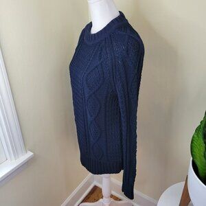 J. Crew Navy Cable Knit Sweater Chunky Fisherman Cotton Crewneck Women's Size XS