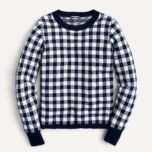 J. Crew Navy Cashmere Gingham Sweater ASO Wednesday Addams