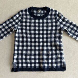J. Crew Navy Cashmere Gingham Sweater ASO Wednesday Addams