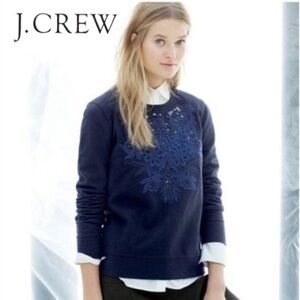 J. Crew Navy Cotton Embroidered Floral Sweatshirt Small