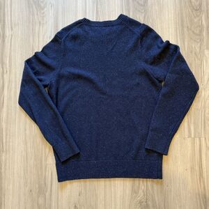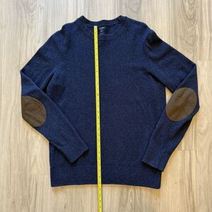 J Crew Navy Flecked Sweater LT Large Tall 80% Lambswool 20% Nylon Elbow Patches