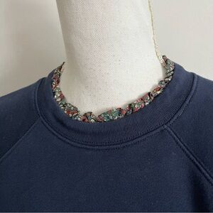 J. Crew • Navy Floral Ruffleneck Pullover Sweatshirt