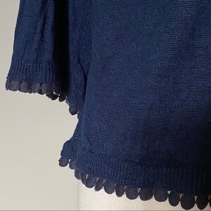 J. Crew Navy Linen Sweater with Pom Pom Trim, Med