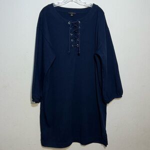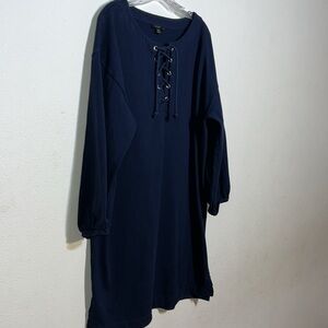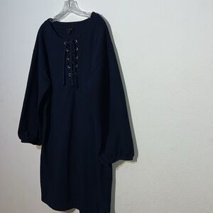 Elegant navy midi dress with lace-up front. Long sleeves. Perfect for any occasion.