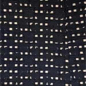 Navy blue with white stitched pattern. White squares intersect with polka dots. Hidden back zip. 6" back slit (still stitched shut).