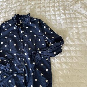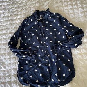 J. Crew Navy Polka Dot Ruffle Blouse