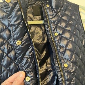 J. Crew Navy Quilted Vest with Gold Accents