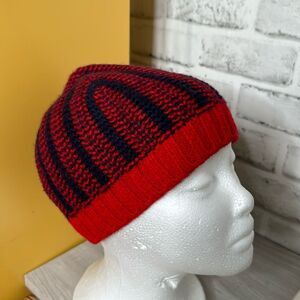 J. Crew Navy & Red Wool Beanie Hat Winter