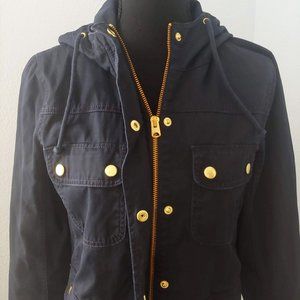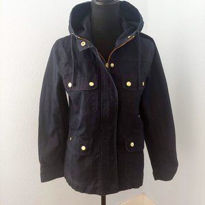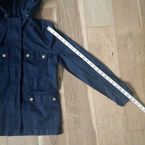 J. Crew Navy Resin-Coated Twill Jacket with Hood