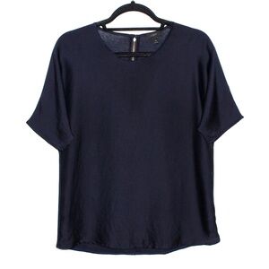 J. Crew Navy Satin Charmeuse Front Short Sleeve Blouse