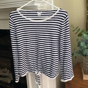 J Crew Navy Striped Boatneck Tie-Front Sweater