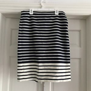 Navy & White Striped J. Crew The Pencil Skirt - J. Crew engineered the stripes on this skirt to reverse at the hem for a flattering colorblock effect. And you thought stripes couldn't get any better.