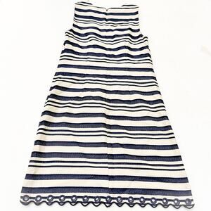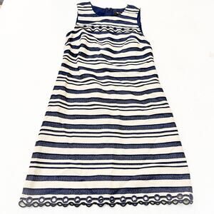J. Crew Navy Striped Shift Knee Length Dress Eyelet Hem Sleeveless Size 0 EUC