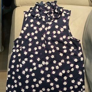 J. Crew Navy Violet Ruffleneck Sleeveless Top In Scattered Peony Print in size XXS
